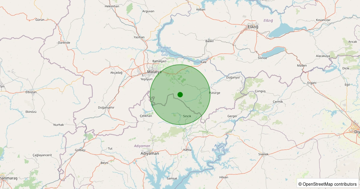 Son 7 gün içinde Battalgazi - Gülümuşağı Köyü noktasından 100 km yarıçap içerisinde meydana gelen diğer depremler: