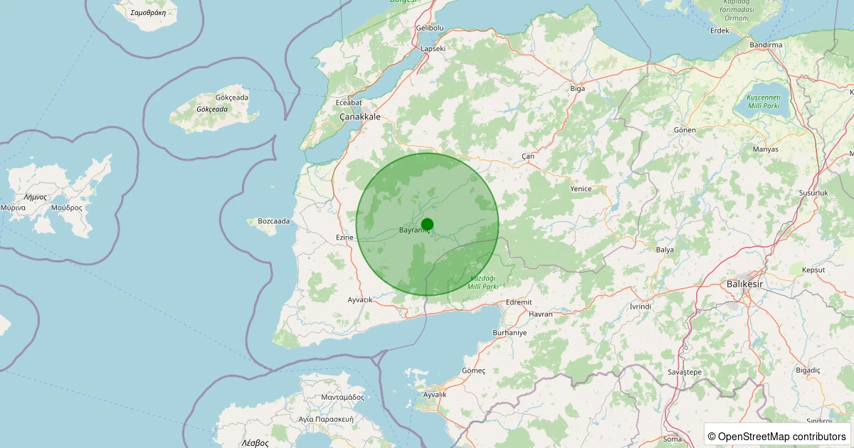 Son 7 gün içinde Bayramiç - Tülüler Köyü noktasından 100 km yarıçap içerisinde meydana gelen diğer depremler:
