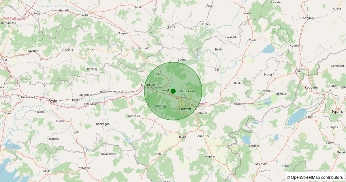 Son 7 gün içinde Sarayköy - Sığma Köyü noktasından 100 km yarıçap içerisinde meydana gelen diğer depremler: