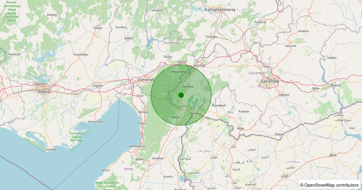Son 7 gün içinde İslahiye - Sulumağara noktasından 100 km yarıçap içerisinde meydana gelen diğer depremler: