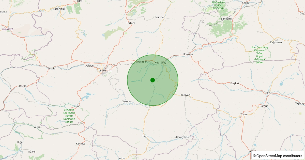Son 7 gün içinde Köprüköy - Duatepe noktasından 100 km yarıçap içerisinde meydana gelen diğer depremler: