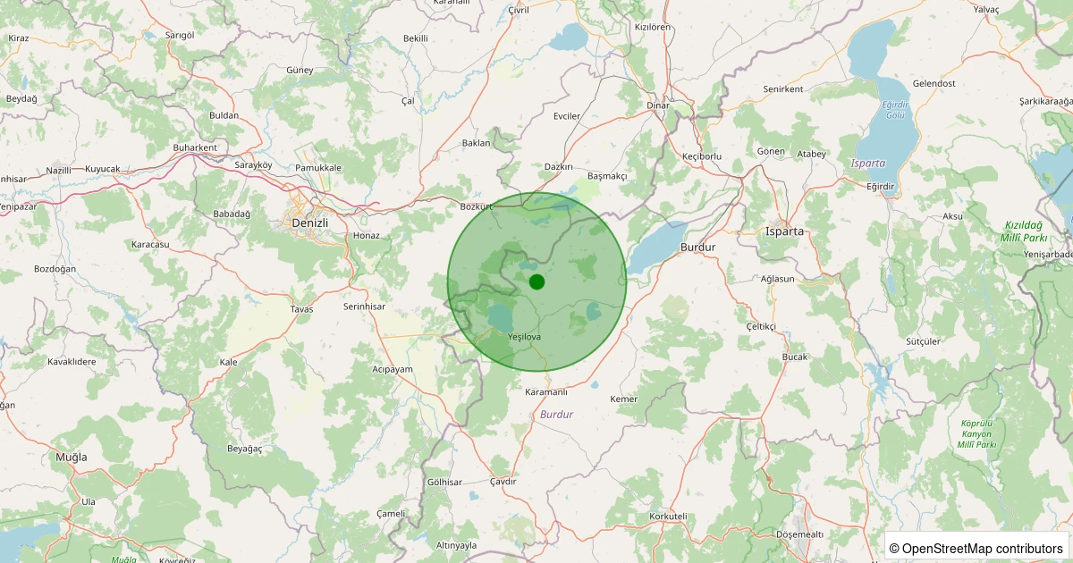 Son bir hafta içerisinde Burdur şehri Yeşilova - Dereköy Köyü noktasından 100 km yarıçap içerisinde toplamda 44 deprem kaydedilmiştir. Bu depremlerden en büyüğü 2.5 büyüklüğünde ve en sığ odaklısı 2.10 kilometre derinlikte gerçekleşmiştir.