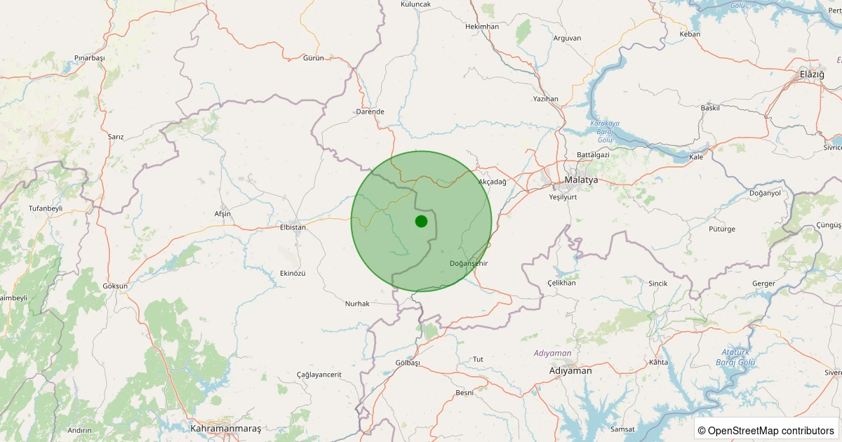 Son 7 gün içinde Elbistan - Atmalı Kaşanlı Köyü noktasından 100 km yarıçap içerisinde meydana gelen diğer depremler: