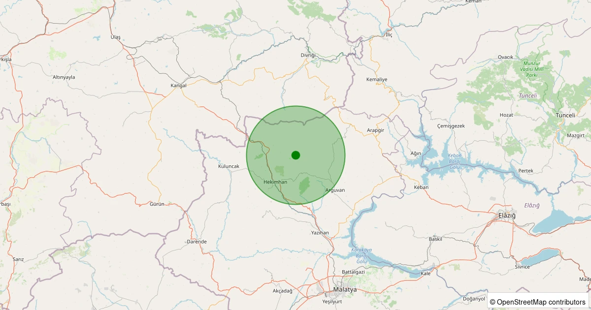 Son 7 gün içinde Hekimhan - Aşağı Sazlıca Köyü noktasından 100 km yarıçap içerisinde meydana gelen diğer depremler: