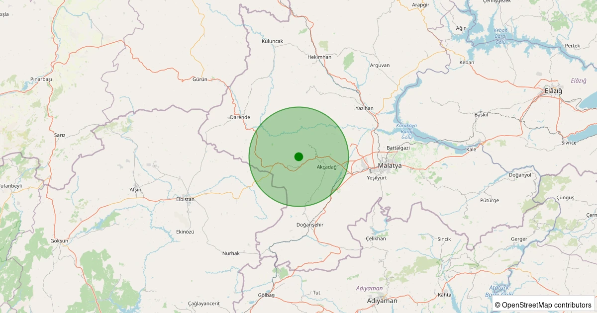 Son 7 gün içinde Akçadağ - Tataruşağı noktasından 100 km yarıçap içerisinde meydana gelen diğer depremler: