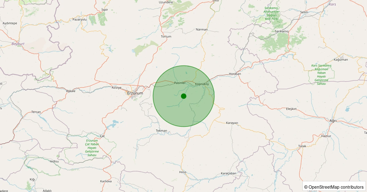 Son 7 gün içinde Pasinler - Yastıktepe noktasından 100 km yarıçap içerisinde meydana gelen diğer depremler: