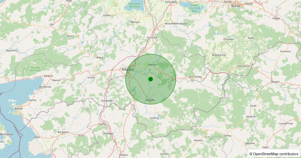 Son 7 gün içinde Kepsut - Kalburcu noktasından 100 km yarıçap içerisinde meydana gelen diğer depremler: