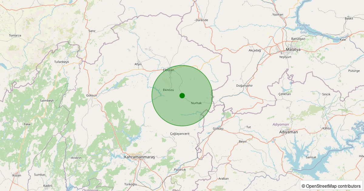 Son 7 gün içinde Nurhak - Derbent (Barış) noktasından 100 km yarıçap içerisinde meydana gelen diğer depremler: