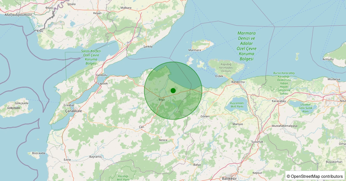Son 7 gün içinde Biga - Kanibey Köyü noktasından 100 km yarıçap içerisinde meydana gelen diğer depremler: