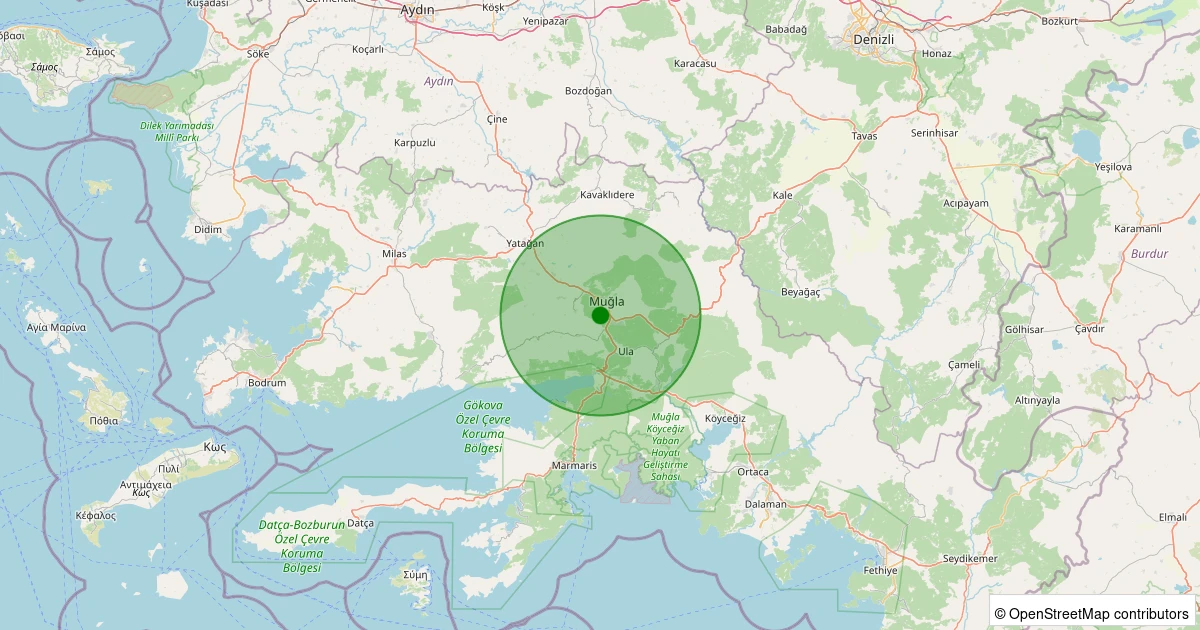 Son 7 gün içinde Menteşe - Akkaya noktasından 100 km yarıçap içerisinde meydana gelen diğer depremler: