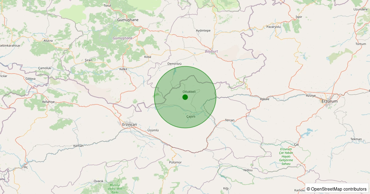 Son 7 gün içinde Çayırlı - Cennetpınar Köyü noktasından 100 km yarıçap içerisinde meydana gelen diğer depremler:
