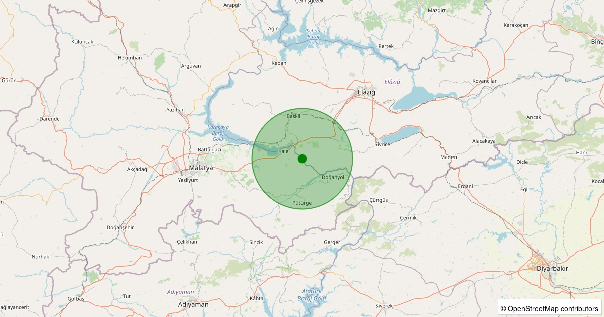 Son bir hafta içerisinde Malatya şehri Kale - Yenidamlar Köyü noktasından 100 km yarıçap içerisinde toplamda 217 deprem kaydedilmiştir. Bu depremlerden en büyüğü 2.8 büyüklüğünde ve en sığ odaklısı 0.00 kilometre derinlikte gerçekleşmiştir.