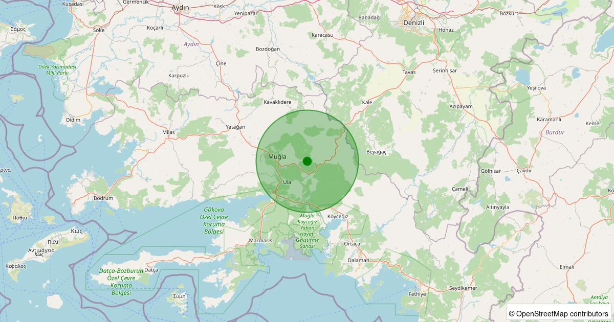 Son 7 gün içinde Menteşe - Yaraş noktasından 100 km yarıçap içerisinde meydana gelen diğer depremler: