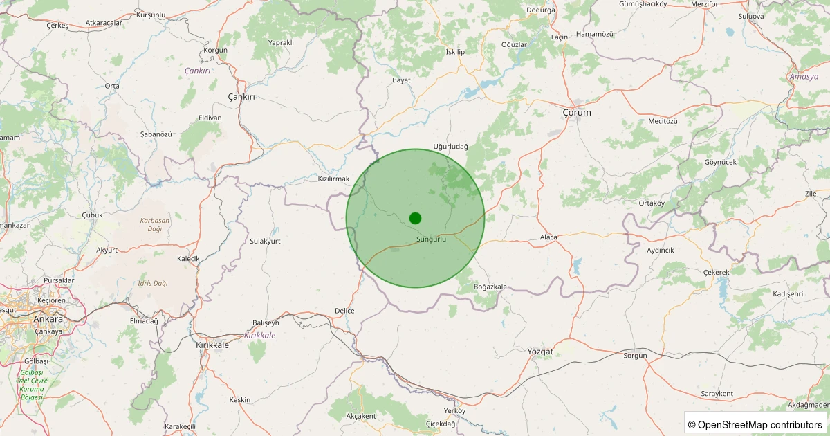 Son 7 gün içinde Sungurlu - Kışla Köyü noktasından 100 km yarıçap içerisinde meydana gelen diğer depremler: