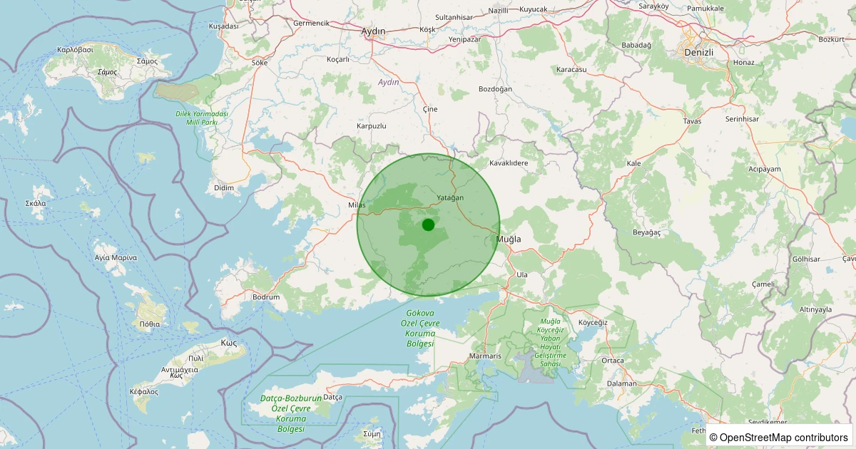 Son 7 gün içinde Yatağan - Bağyaka noktasından 100 km yarıçap içerisinde meydana gelen diğer depremler: