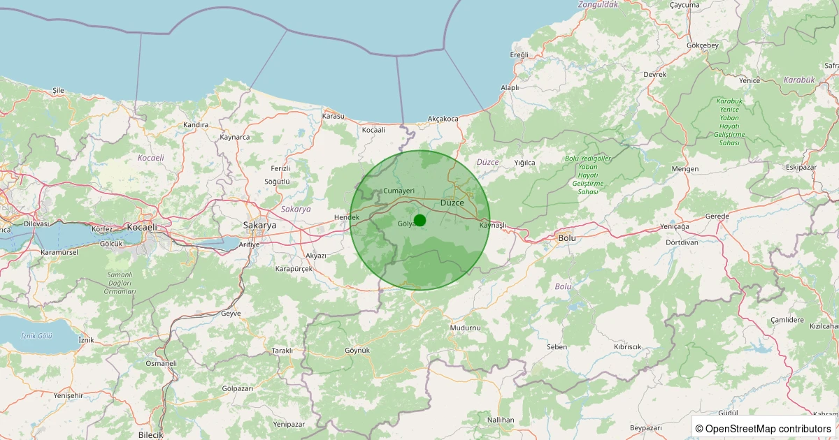 Son bir hafta içerisinde Düzce şehri Merkez noktasından 100 km yarıçap içerisinde toplamda 39 deprem kaydedilmiştir. Bu depremlerden en büyüğü 3.1 büyüklüğünde ve en sığ odaklısı 1.50 kilometre derinlikte gerçekleşmiştir.