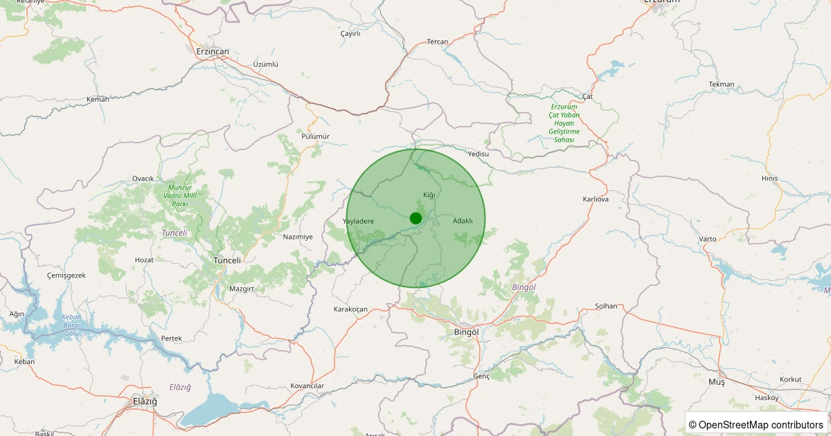Son 7 gün içinde Kiğı - Kutluca Köyü noktasından 100 km yarıçap içerisinde meydana gelen diğer depremler: