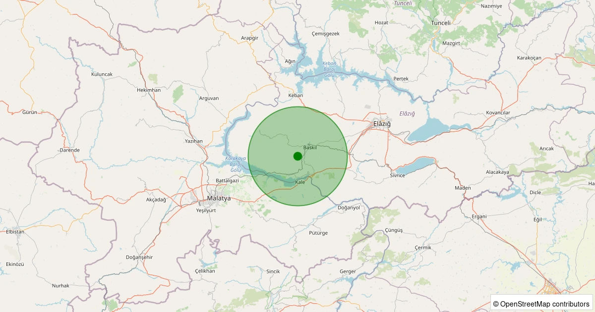 Son 7 gün içinde Baskil - Harabakayış Köyü noktasından 100 km yarıçap içerisinde meydana gelen diğer depremler:
