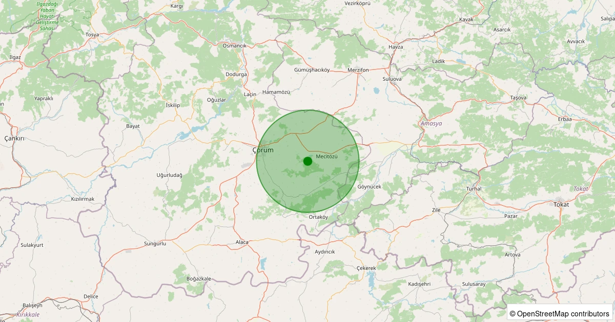 Son bir hafta içerisinde Çorum şehri Mecitözü - Akçakoyun Köyü noktasından 100 km yarıçap içerisinde toplamda 11 deprem kaydedilmiştir. Bu depremlerden en büyüğü 1.2 büyüklüğünde ve en sığ odaklısı 6.80 kilometre derinlikte gerçekleşmiştir.