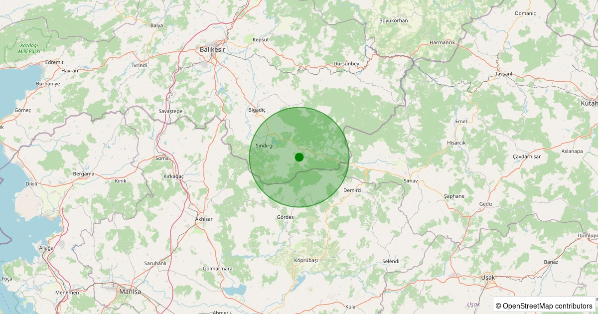 Son 7 gün içinde Sındırgı - Çıkrıkçı noktasından 100 km yarıçap içerisinde meydana gelen diğer depremler: