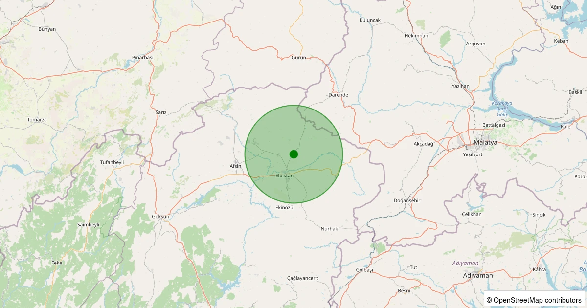 Son 7 gün içinde Elbistan - Küçük Yapalak Köyü noktasından 100 km yarıçap içerisinde meydana gelen diğer depremler: