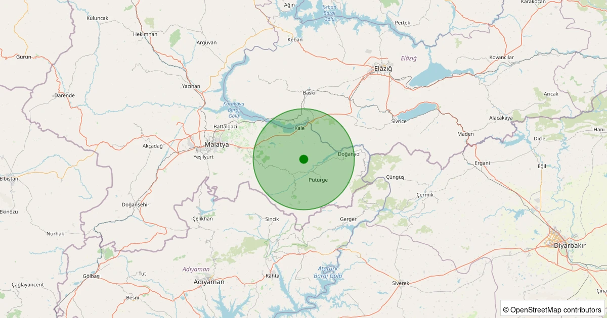 Son 7 gün içinde Pütürge - Aktarla Köyü noktasından 100 km yarıçap içerisinde meydana gelen diğer depremler: