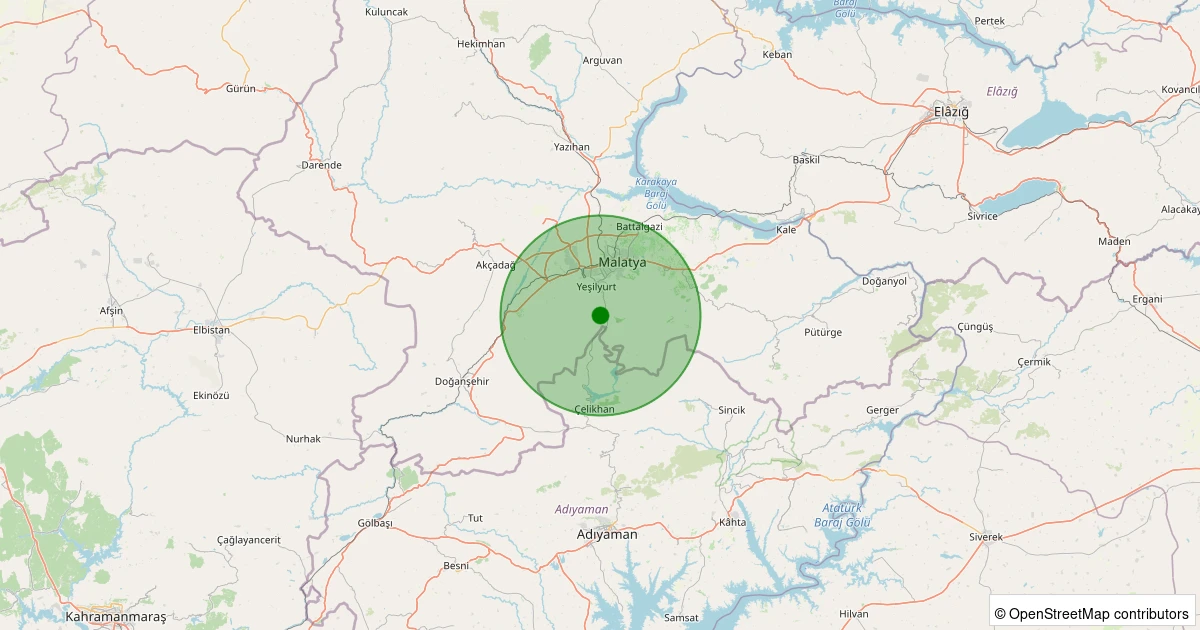 Son 7 gün içinde Yeşilyurt - Kadiruşağı noktasından 100 km yarıçap içerisinde meydana gelen diğer depremler: