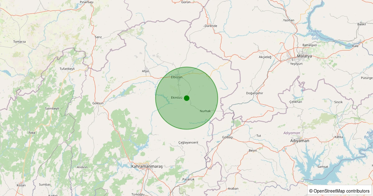 Son 7 gün içinde Nurhak - Hançıplaklar (Barış) noktasından 100 km yarıçap içerisinde meydana gelen diğer depremler: