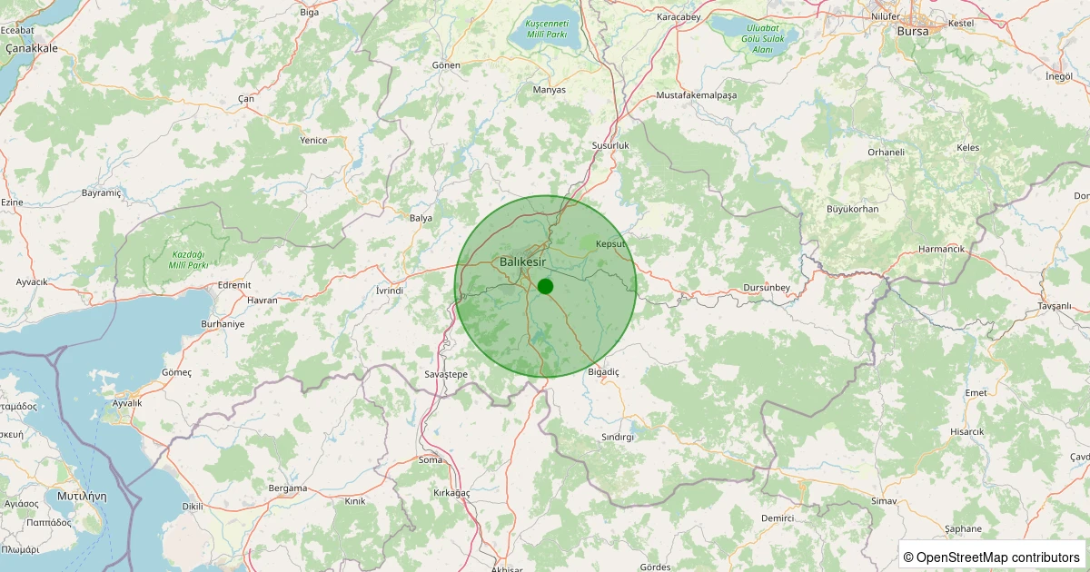 Son 7 gün içinde Altıeylül - Büyükbostancı noktasından 100 km yarıçap içerisinde meydana gelen diğer depremler:
