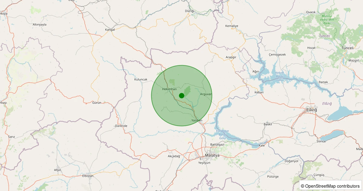 Son 7 gün içinde Hekimhan - Bahçelievler noktasından 100 km yarıçap içerisinde meydana gelen diğer depremler: