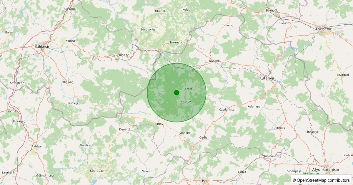 Son 7 gün içinde Emet - Yenice Çimenlik noktasından 100 km yarıçap içerisinde meydana gelen diğer depremler: