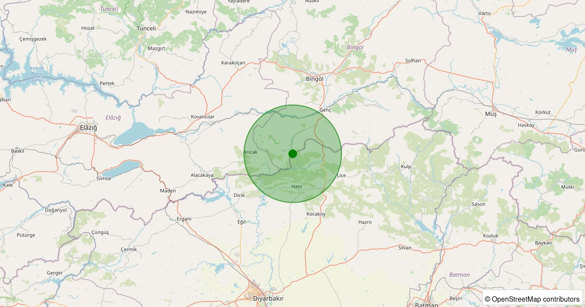 Son 7 gün içinde Genç - Servi/Sefikdursun noktasından 100 km yarıçap içerisinde meydana gelen diğer depremler: