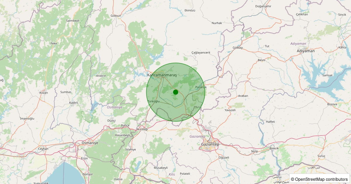 Son 7 gün içinde Dulkadiroğlu - Fituşağı noktasından 100 km yarıçap içerisinde meydana gelen diğer depremler: