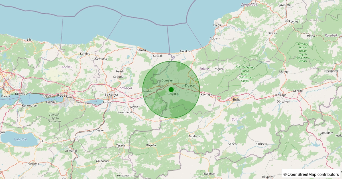 Son 7 gün içinde Gölyaka - Kuyudüzü noktasından 100 km yarıçap içerisinde meydana gelen diğer depremler: