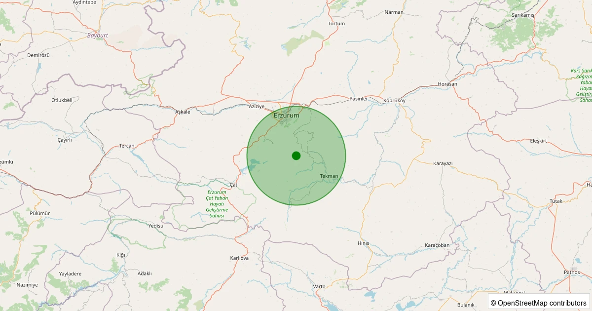 Son 7 gün içinde Tekman - Yalınca noktasından 100 km yarıçap içerisinde meydana gelen diğer depremler: