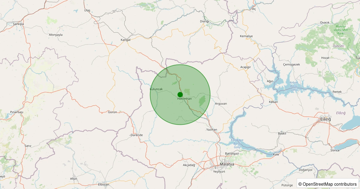 Son 7 gün içinde Hekimhan - Yeni noktasından 100 km yarıçap içerisinde meydana gelen diğer depremler: