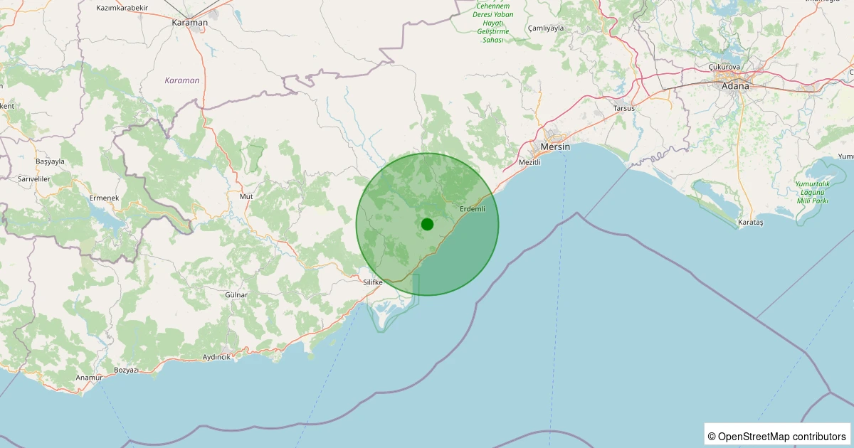 Son bir hafta içerisinde Mersin şehri Erdemli - Karaahmetli noktasından 100 km yarıçap içerisinde toplamda 12 deprem kaydedilmiştir. Bu depremlerden en büyüğü 2.6 büyüklüğünde ve en sığ odaklısı 0.00 kilometre derinlikte gerçekleşmiştir.