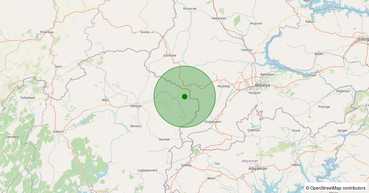 Son 7 gün içinde Elbistan - Topallı Köyü noktasından 100 km yarıçap içerisinde meydana gelen diğer depremler: