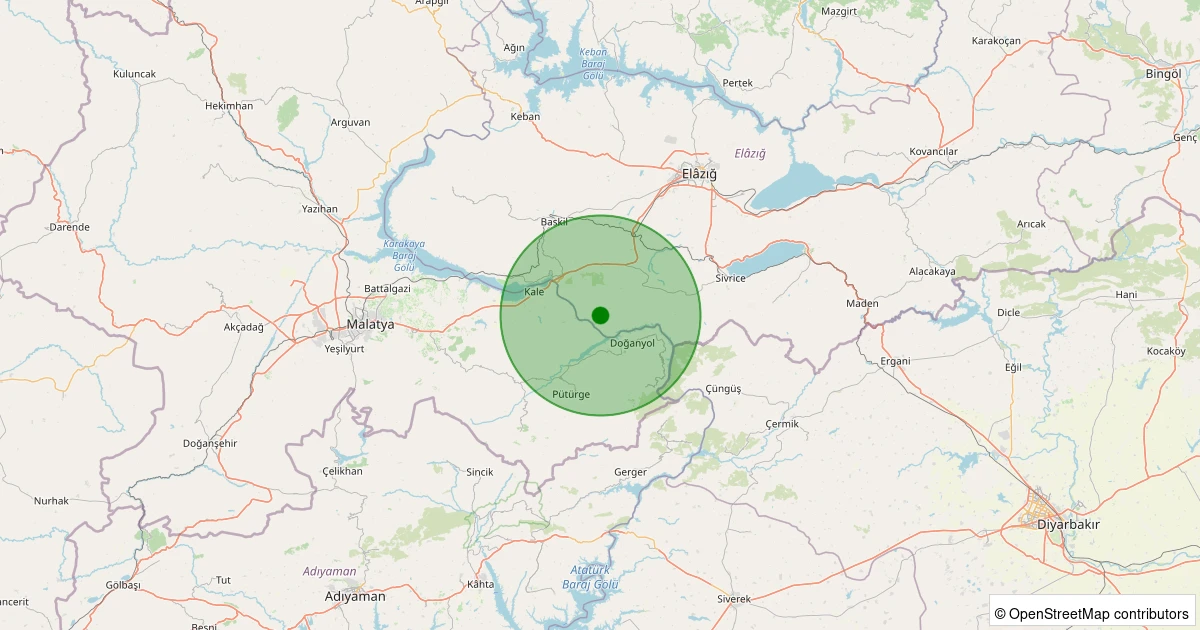 Son 7 gün içinde Sivrice noktasından 100 km yarıçap içerisinde meydana gelen diğer depremler: