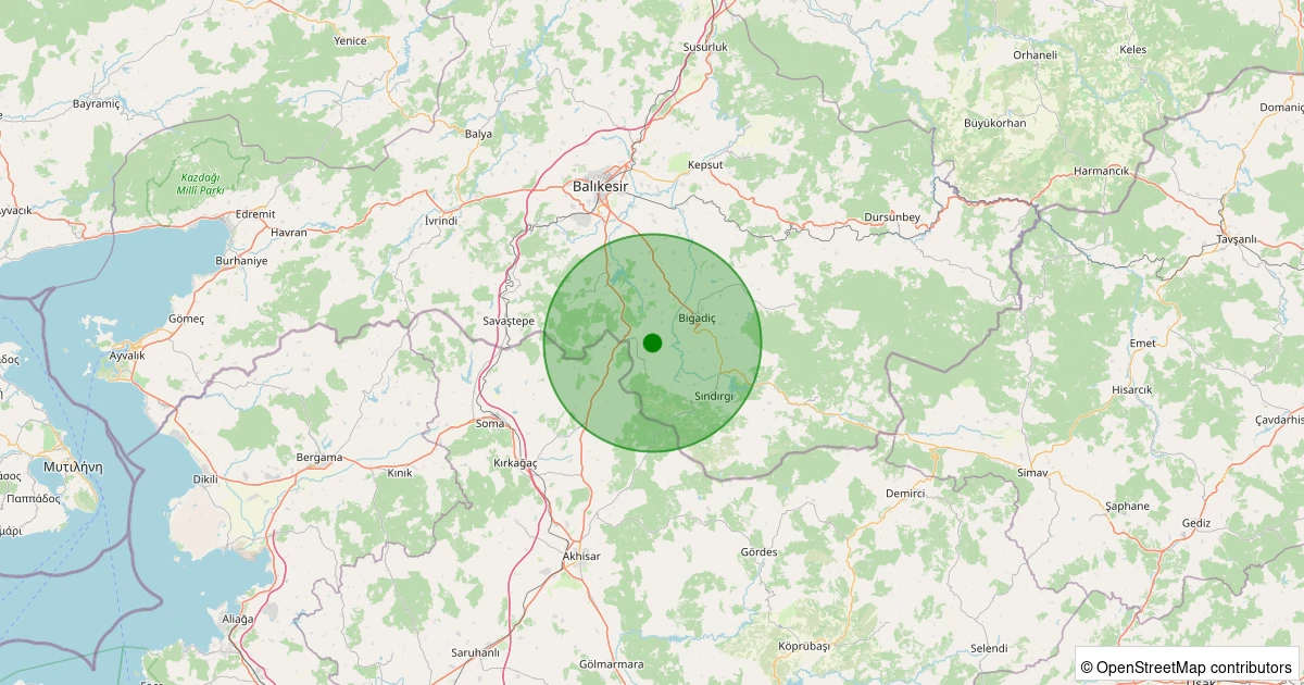 Son 7 gün içinde Sındırgı - Eşmedere noktasından 100 km yarıçap içerisinde meydana gelen diğer depremler: