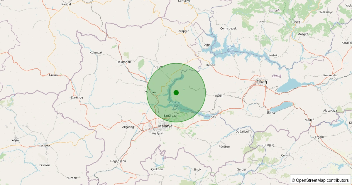 Son 7 gün içinde Baskil - Şeyh Hasan Köyü noktasından 100 km yarıçap içerisinde meydana gelen diğer depremler: