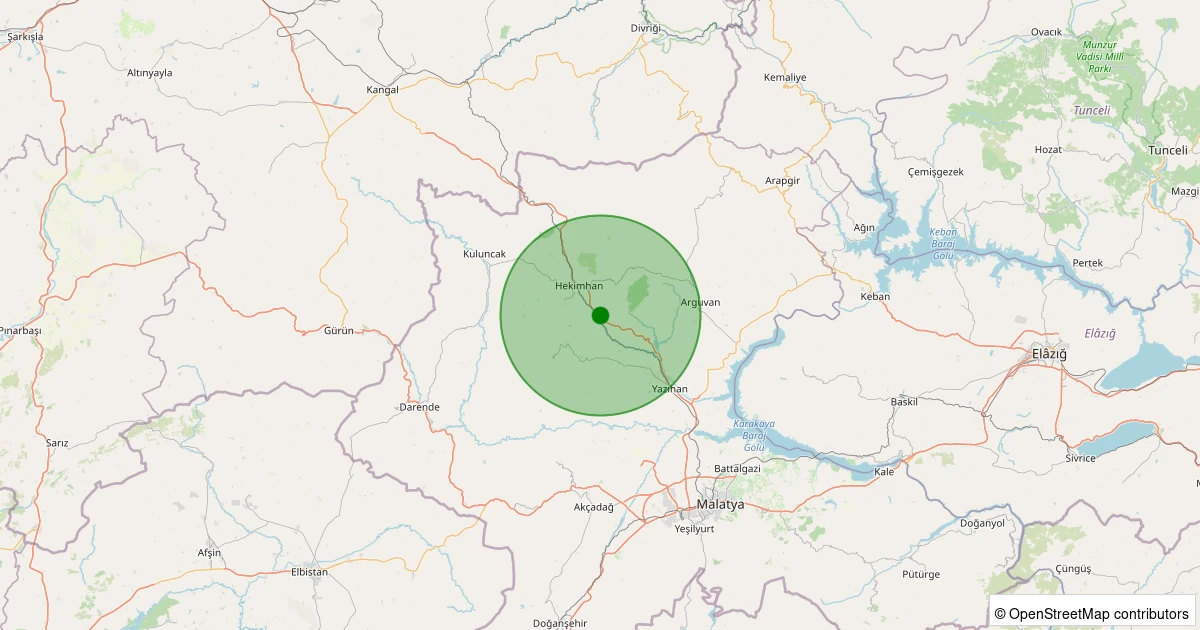 Son 7 gün içinde Hekimhan - Kocaözü Köyü noktasından 100 km yarıçap içerisinde meydana gelen diğer depremler: