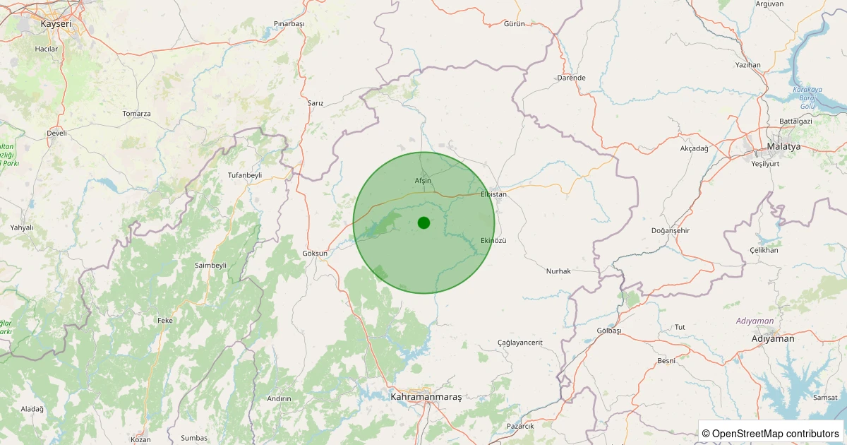 Son 7 gün içinde Göksun - Kamışcık noktasından 100 km yarıçap içerisinde meydana gelen diğer depremler: