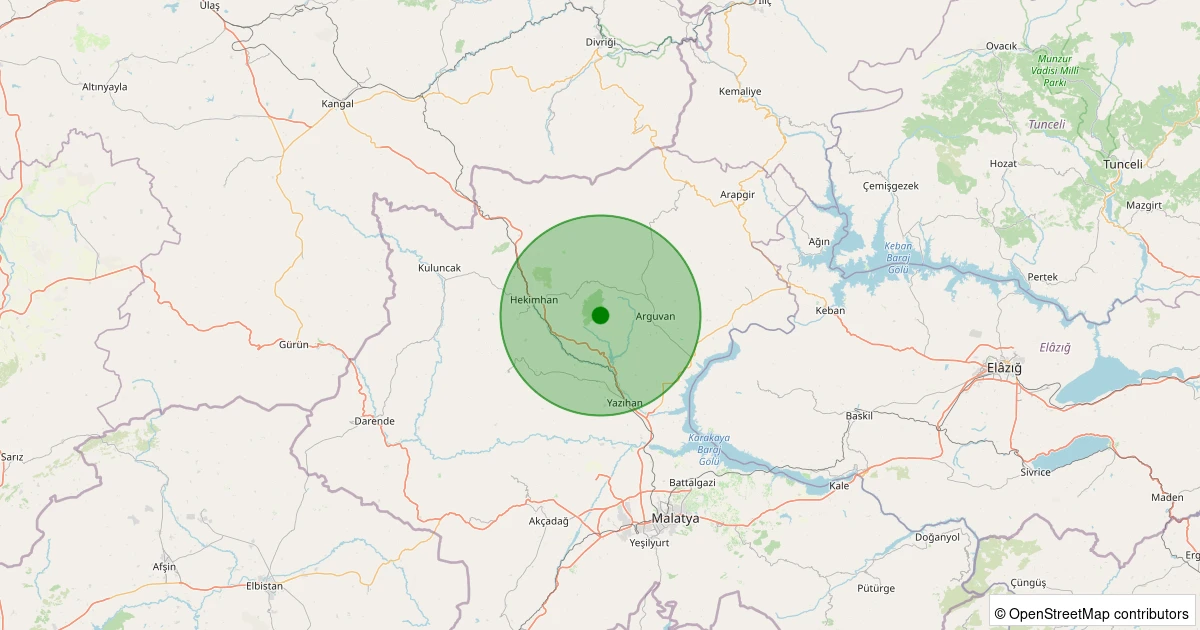 Son 7 gün içinde Hekimhan - Yeşilpınar Köyü noktasından 100 km yarıçap içerisinde meydana gelen diğer depremler: