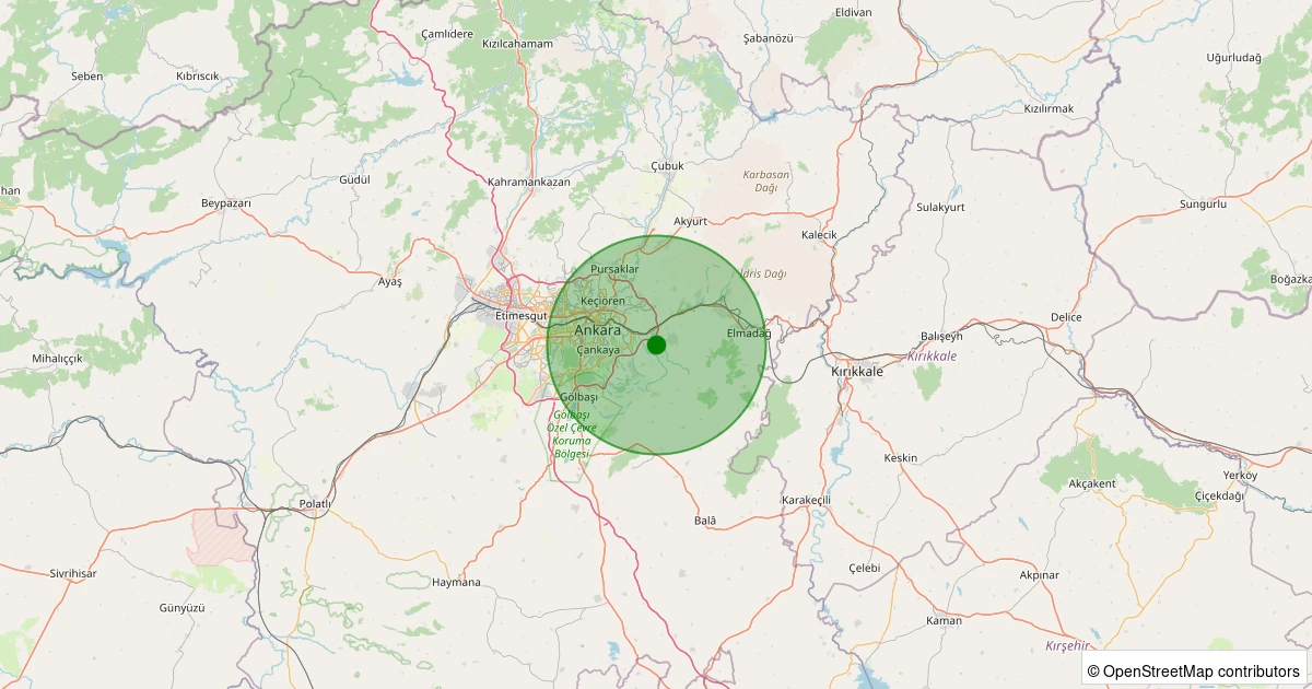 Son 7 gün içinde Mamak - Kıbrıs noktasından 100 km yarıçap içerisinde meydana gelen diğer depremler: