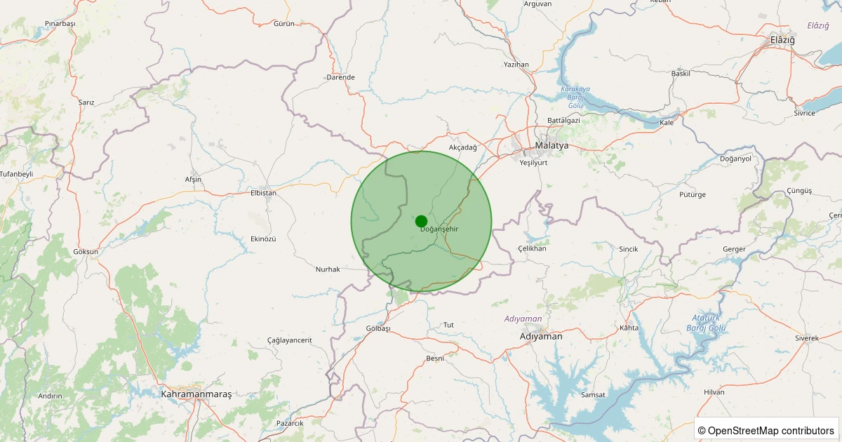 Son 7 gün içinde Doğanşehir - Fındık noktasından 100 km yarıçap içerisinde meydana gelen diğer depremler: