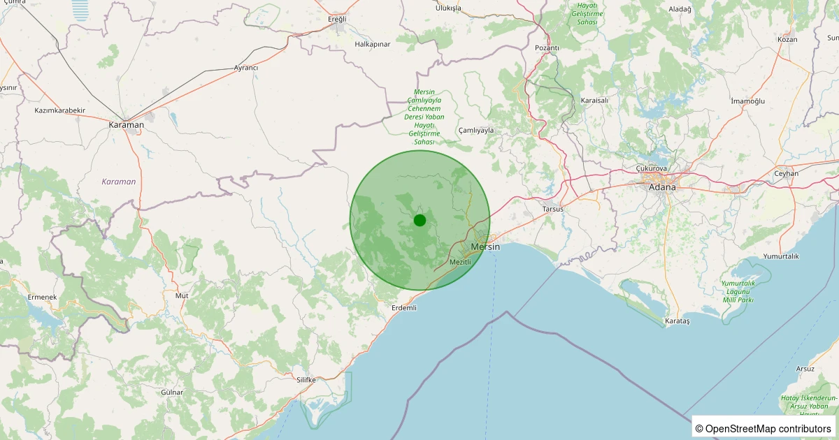 Son 7 gün içinde Mezitli - Akarca noktasından 100 km yarıçap içerisinde meydana gelen diğer depremler: