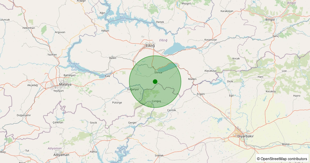 Son 7 gün içinde Sivrice - Y.Çanakçı Köyü noktasından 100 km yarıçap içerisinde meydana gelen diğer depremler: