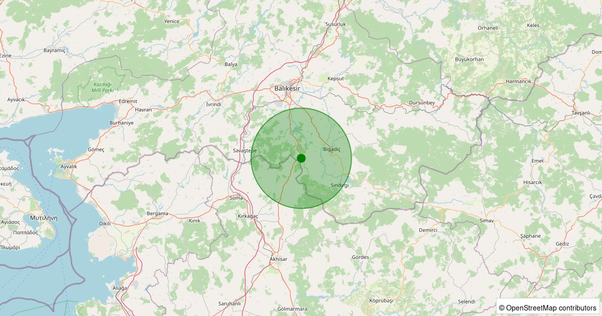 Son 7 gün içinde Sındırgı - Akçakısrak noktasından 100 km yarıçap içerisinde meydana gelen diğer depremler: