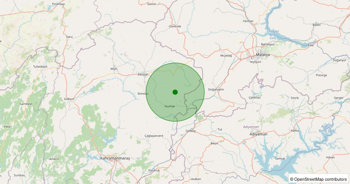 Son 7 gün içinde Nurhak noktasından 100 km yarıçap içerisinde meydana gelen diğer depremler: